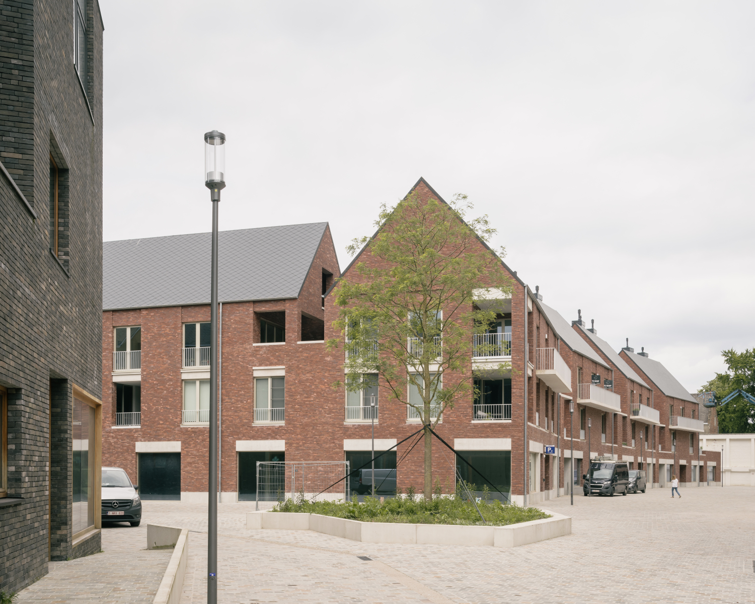 A new urban square will be developed along Leuvensestraat, flanked by approximately 4,500 m² of new retail spaces. The shops will have facades facing the square and will be integrated into the natural slope of the terrain. Parking garages and access roads will be incorporated into the existing elevation differences and kept out of sight, allowing the entire site to remain car-free.