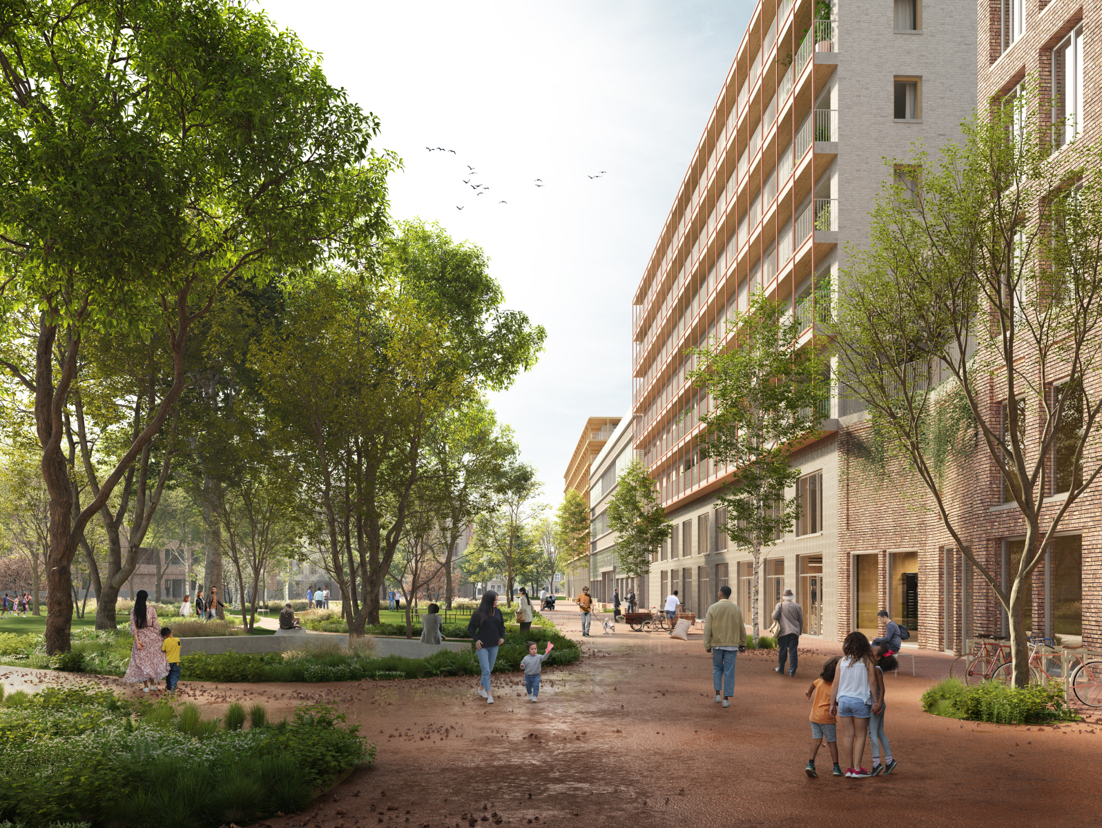 Where logistics and distribution once dominated, a versatile 15-minute city now emerges—a place where living, working, leisure, shopping, and play converge on a human scale.